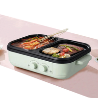 Mouchang ev küçük tencere ile ızgara 2 in 1 elektrikli barbekü mini tencere kızartma tavası
